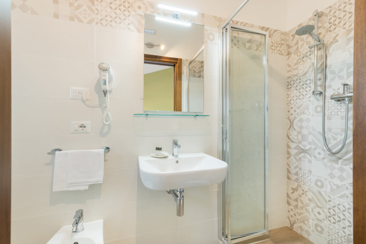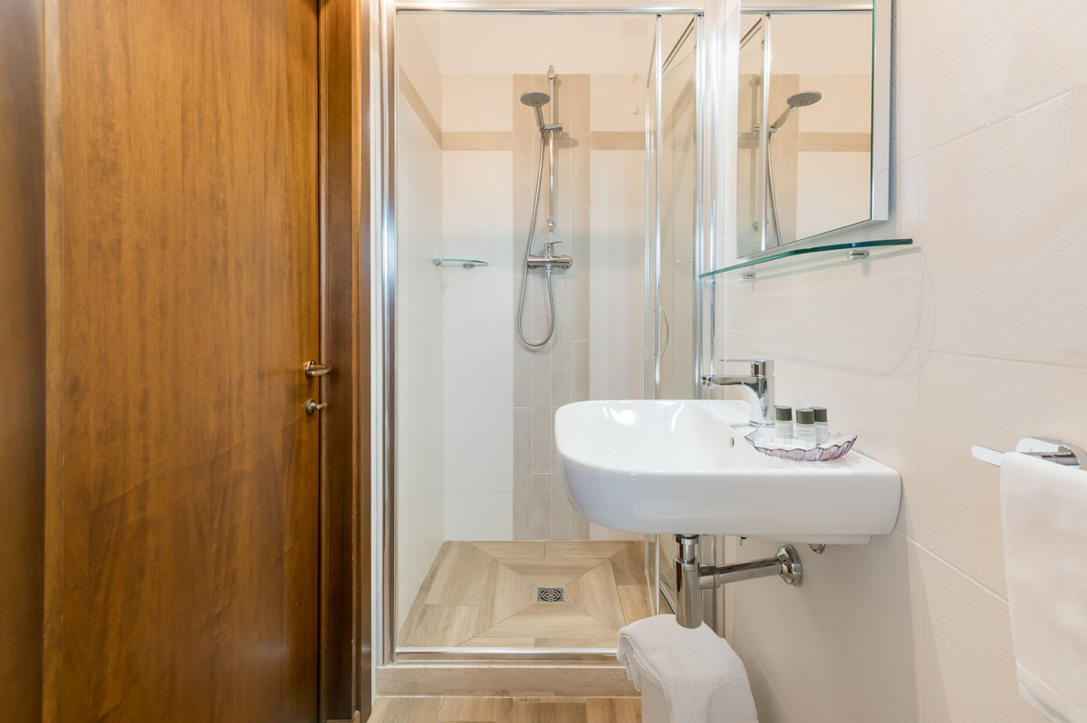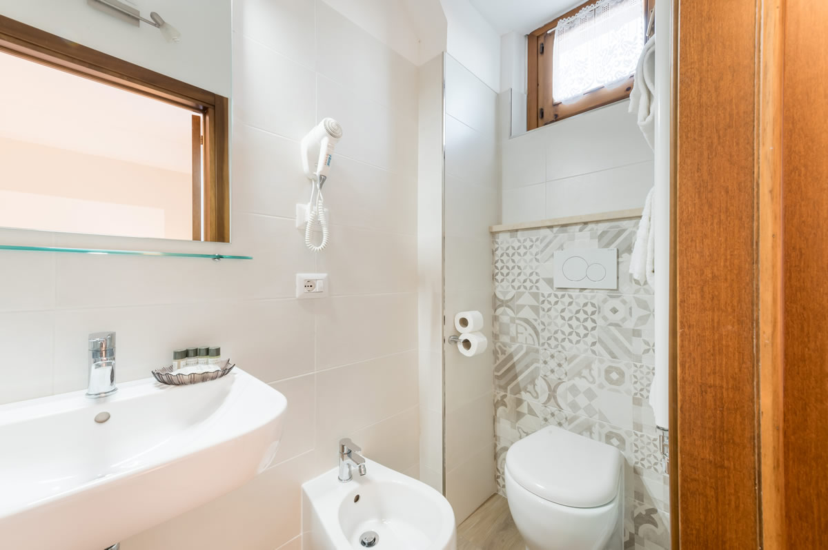 Camera di dimensioni contenute e funzionale, con affaccio sul cortile interno. Soluzione perfetta per soggiorni brevi e rilassanti. La camera è dotata di TV, aria condizionata, Wi-Fi, bagno privato con doccia e asciugacapelli, cassaforte e frigorifero, per garantire comfort e praticità durante tutto il soggiorno.