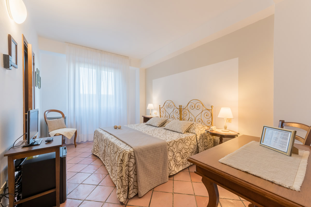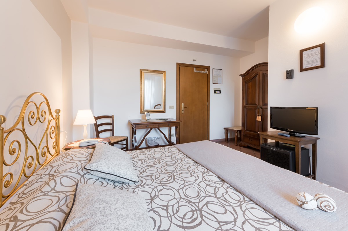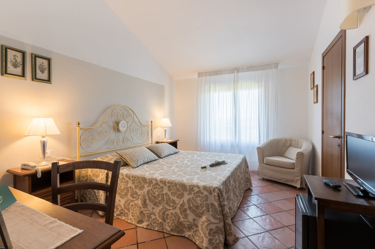 Camera matrimoniale con possibilità di letto aggiuntivo per bambini da 2 a 15 anni, con splendida vista panoramica sul giardino e sulle colline. Ideale per famiglie con un bambino, offre tutti i comfort per rendere il soggiorno piacevole: TV Smart da 32 pollici, aria condizionata, Wi-Fi, bagno privato con doccia e asciugacapelli, cassaforte e frigorifero. Un ambiente accogliente e funzionale, pensato per farvi sentire subito a casa.